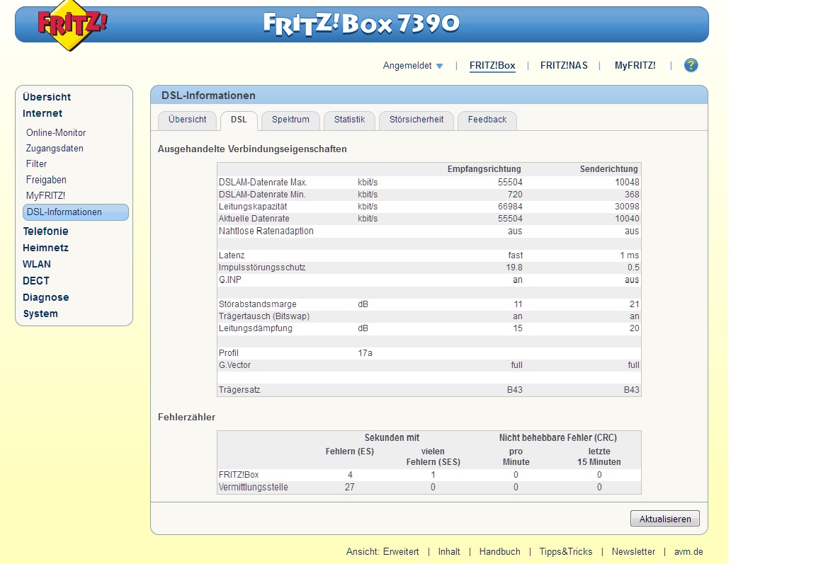 Somit VDSL von 84.000 auf 106.000 gesteigert, aber leider war der Fehler nicht da, als der Techniker da war...