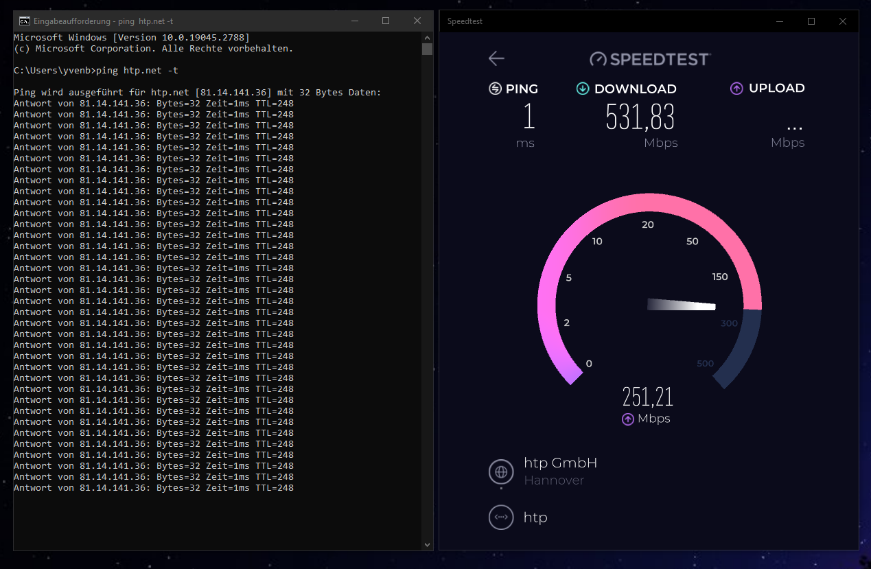 Ich habe FTTH von einem regionalen Anbieter in Hannover (htp). Da verändert sich trotz Download absolut nichts im Ping. Zu meinem Anbieter selbst sind es 1ms (siehe tracert)