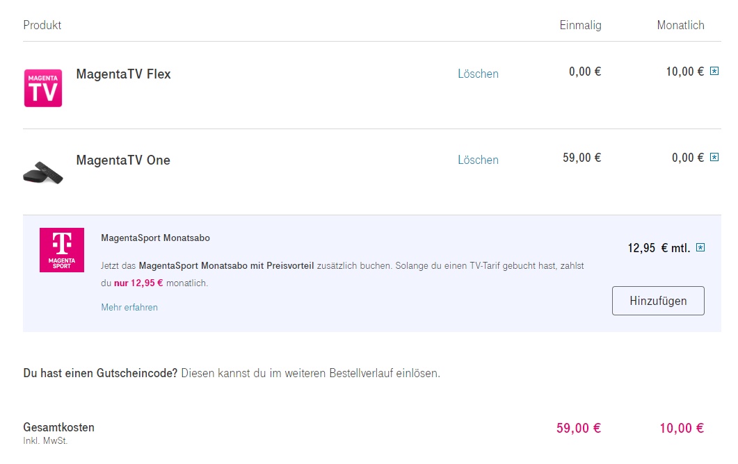 Nun hat der Kunde gesehen, dass es ab dem 25.01. möglich gewesen wäre, die MagentaTV One für einmalig 59 EUR (+ Versand) zusätzlich zu erhalten und mich gefragt, ob er die Box auch für den Preis erhalten kann.
