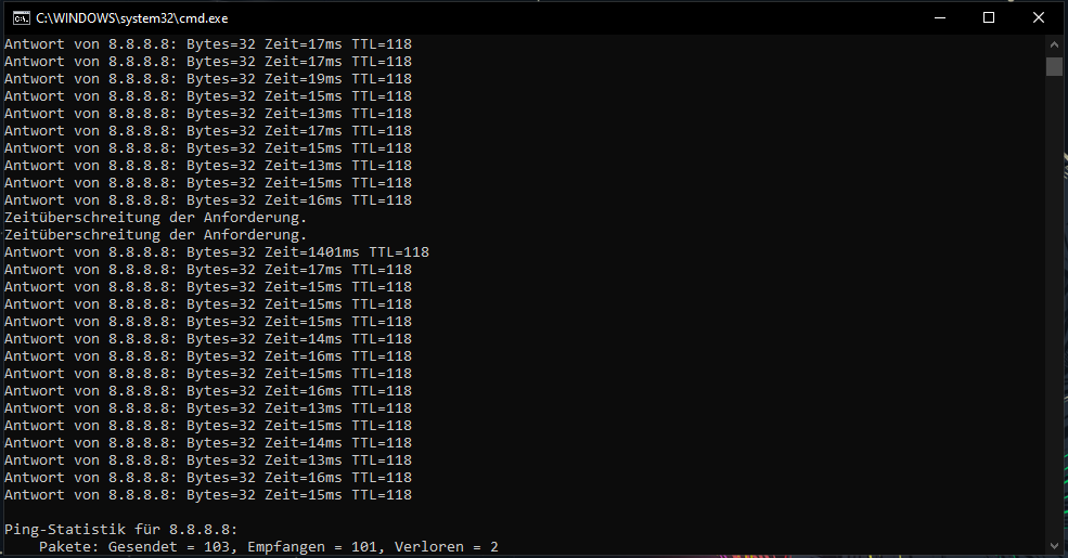 Da es in der Wohnung kein LAN gibt habe ich mir den WLAN Stick Tp-link AC600 High Gain Wireless Dual Band USB Adapter gekauft. Beim Kauf hat man mich bereits darauf aufmerksam gemacht, dass der Adapter bei einem Telekom Router Probleme machen kann. Beim surfen usw. habe ich nichts feststellen können, allerdings treten beim Gaming immer wieder Ping Probleme auf, die sich darin äußern, dass der Ping für 2-3 Sekunden auf über 1000 geht. Ich habe mal das Windows Tool für den Ping laufen lassen. Das Ergebnis davon habe ich in Anhang hochgeladen.
