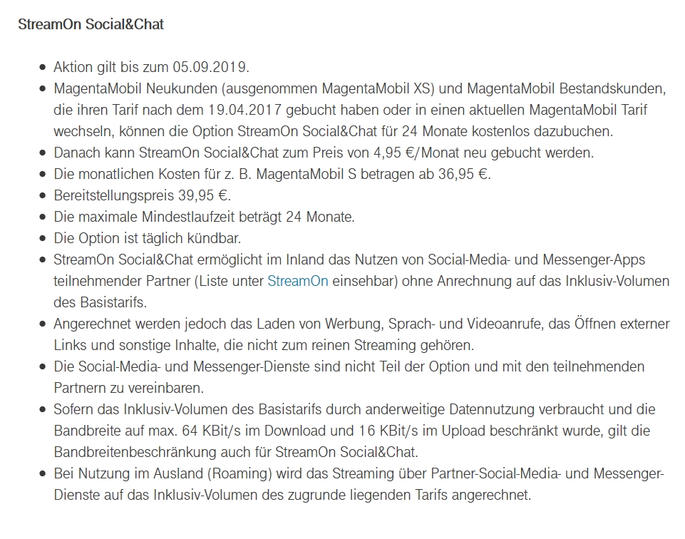 Geht mir ebenso. MagentaMobil L = 10 GB + EINS-Vorteil = 20 GB + StreamOn Music&Video Max.