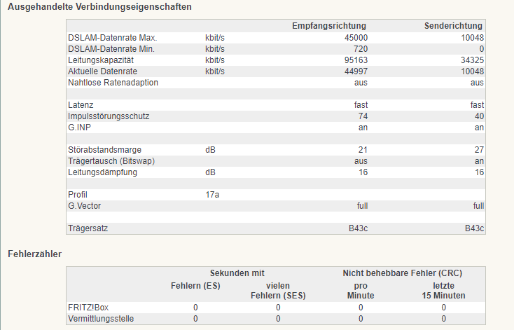 Ich kenne das von der Arbeit her, das gerne die Geräte unterhalb der FritzBoxe 7490 gerne mal Probleme mit dem Profil 17a haben (Vectoring bis 100Mbit).