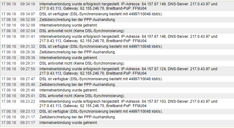 In dem Logfile kommt schon relativ häufig vor, dass das DSL nicht antwortet. Glaube nicht dass das so normal ist und ehrlich gesagt denke ich nicht dass es am Router liegen wird oder?