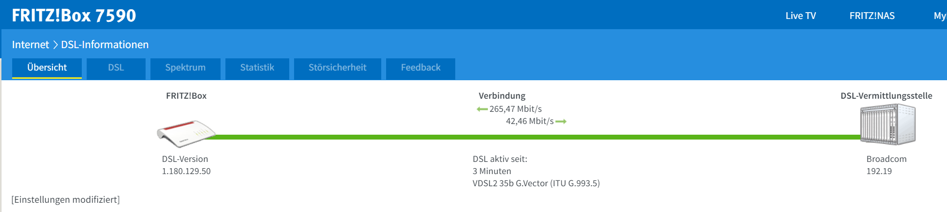 Hmm schade, okay. Ich hätte nicht gedacht dass der Router da wirklich an seine Grenzen kommt. Habe jetzt mal den Regler etwas weiter in Richtung Stabilität geschoben. Selbst wenn ich 35-40k nur bekomme reicht mir das an Geschwindigkeit solange nicht ständig Abbrüche kommen. Ich werde es jetzt die nächsten Tage noch ein bisschen beobachten. Bisher sah es ganz gut aus. Ansonsten würde ich denke eine 7590 mal für 1-2 Monate mieten und schauen, ob es damit komplett behoben ist