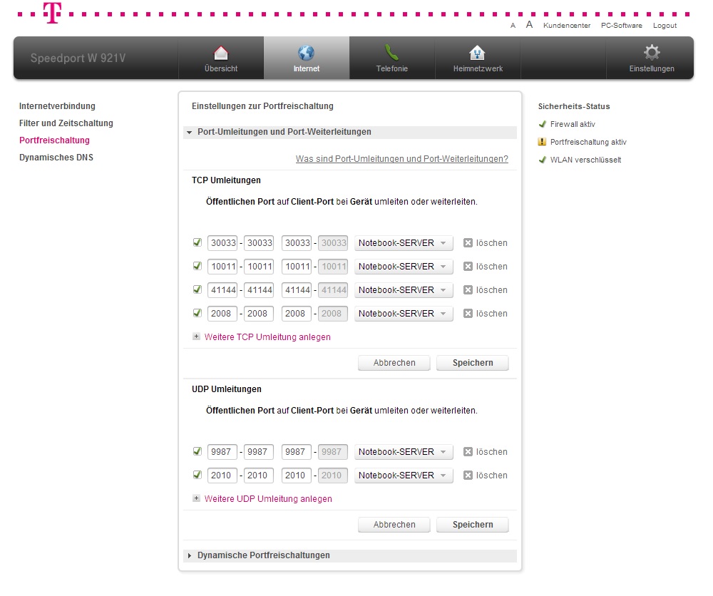 Ich hab folgendes Problem, mein Router der Telekom hat sich natürlich selbst und ohne zu Fragen das Update der Firmware auf 1.34 gezogen, das Problem ist das er seitdem keinen Port mehr freigibt !
