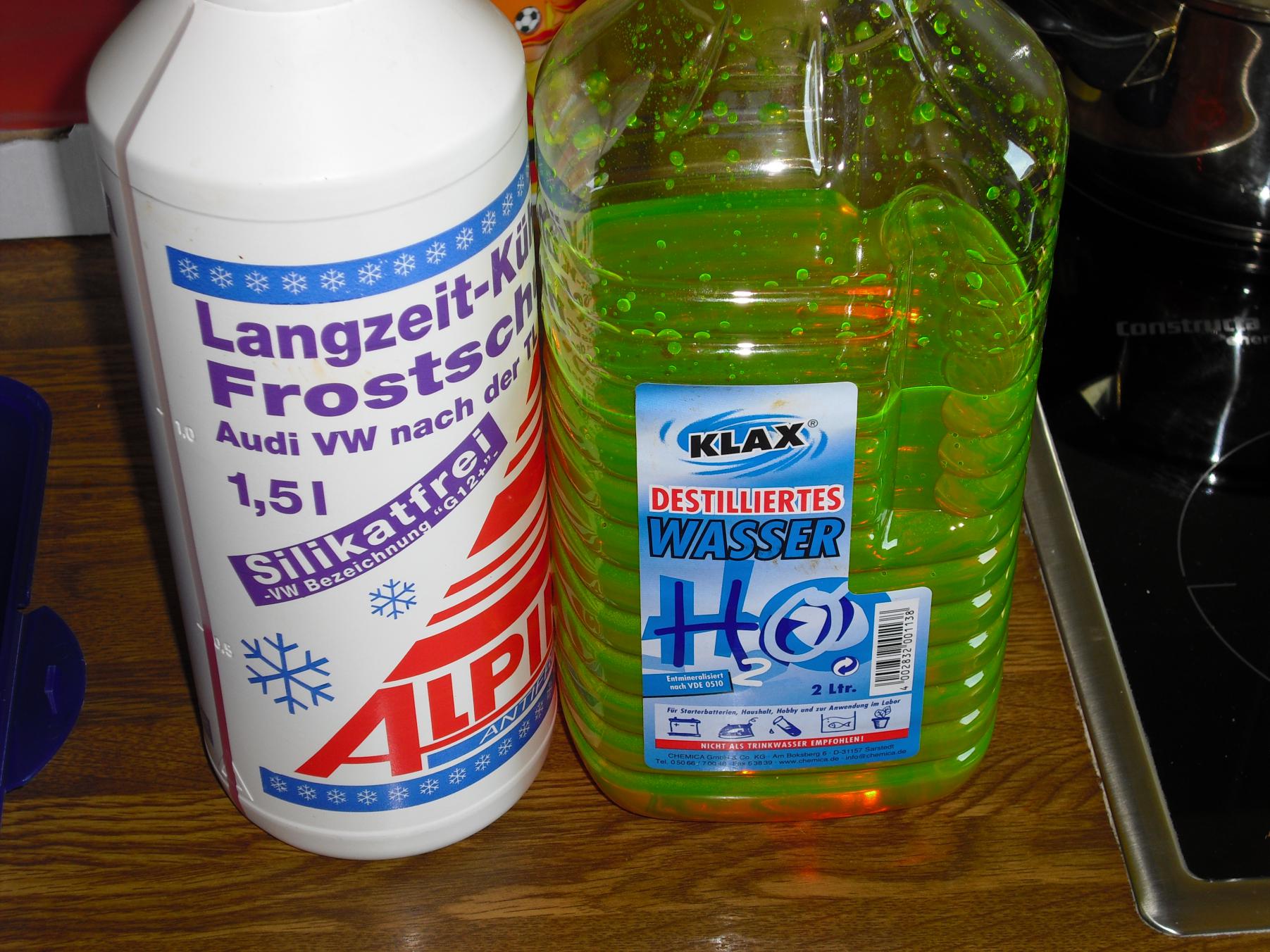 Die Wassersäule hat ca 12-14l Wasser drinnen und um die Färbung so wie sie auf den Fotos zu sehen ist habe ich lediglich 2-3g Uranin benötigt.....