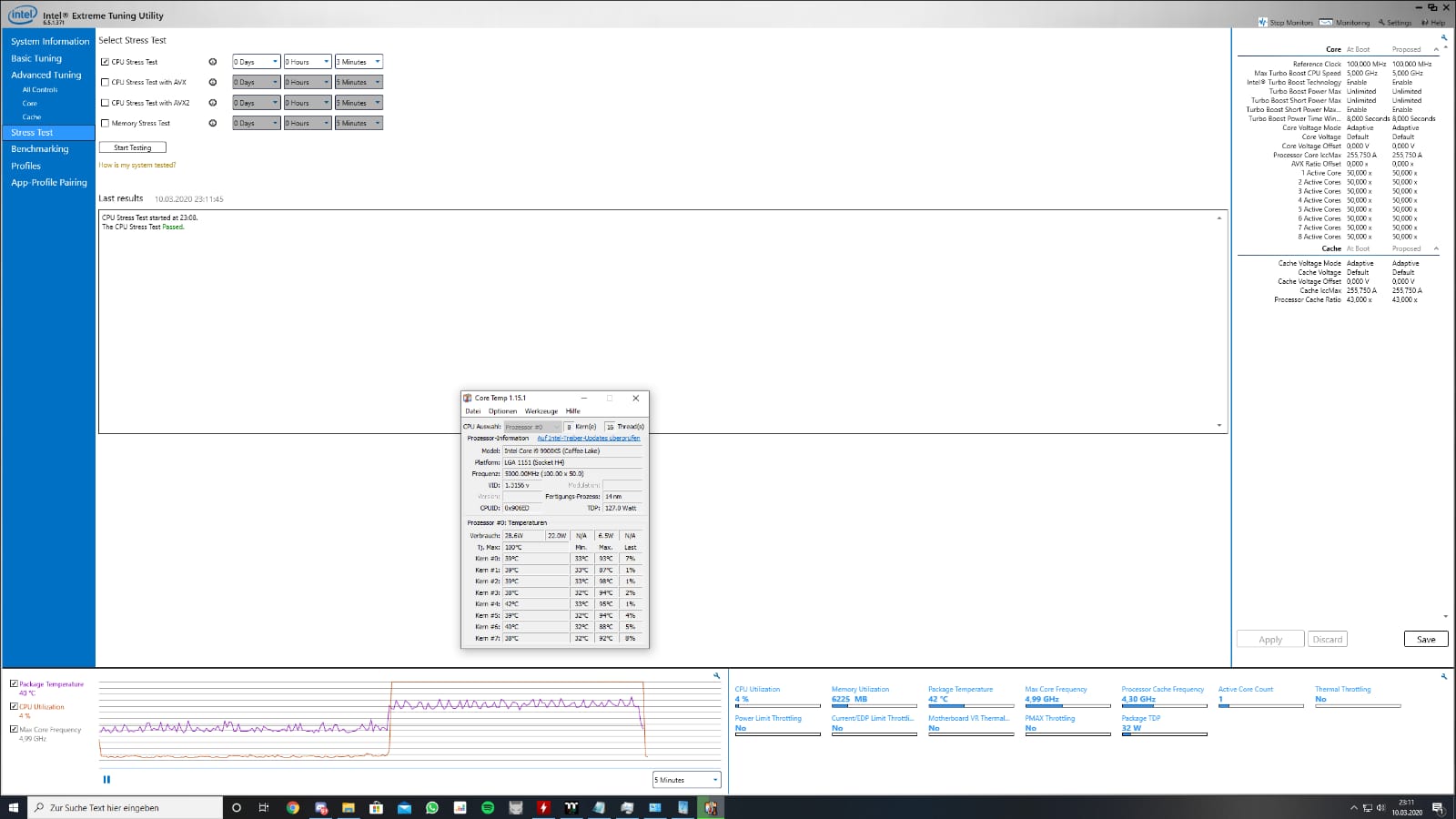 Guten Tag,mein I9 9900ks läuft auf gigabyte aorus Z390 xtreme (default) alles auto,bei 1.46V und wird 96 Grad heiß unter last.