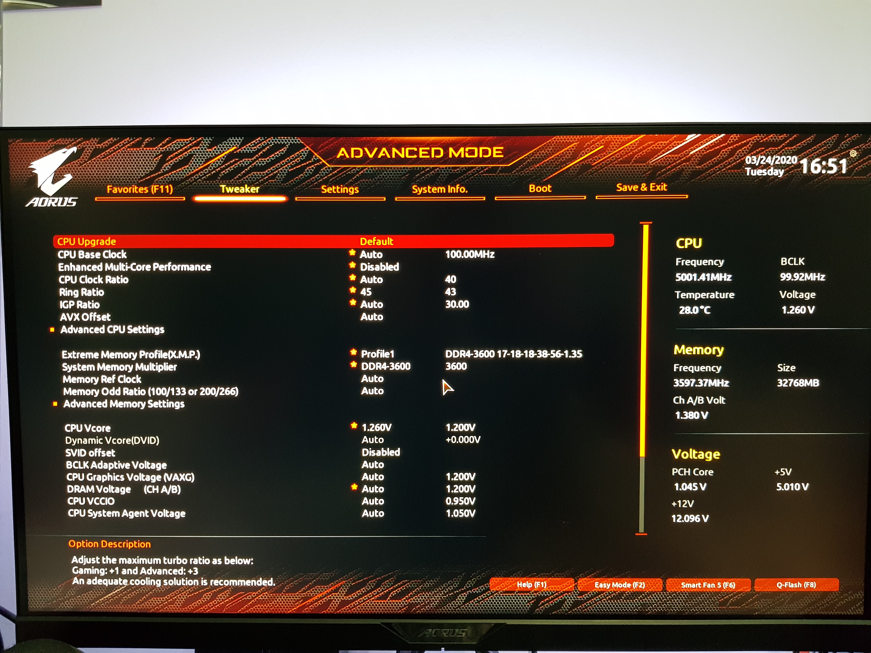 Wie gesagt gleich kommen paar Bilder von Bios. Die ich von auto auf manuelle Werte gewählt habe. Dann könnt ihr mir vielleicht helfen indem ihr 1. Besser nachvollziehen könnt oder natürlich weiter Versuchen besser zu optimierenStullen Andi schrieb:Du schaffst das schon, im Zweifel halt noch 3 RGB Lüfter einbauen![]()