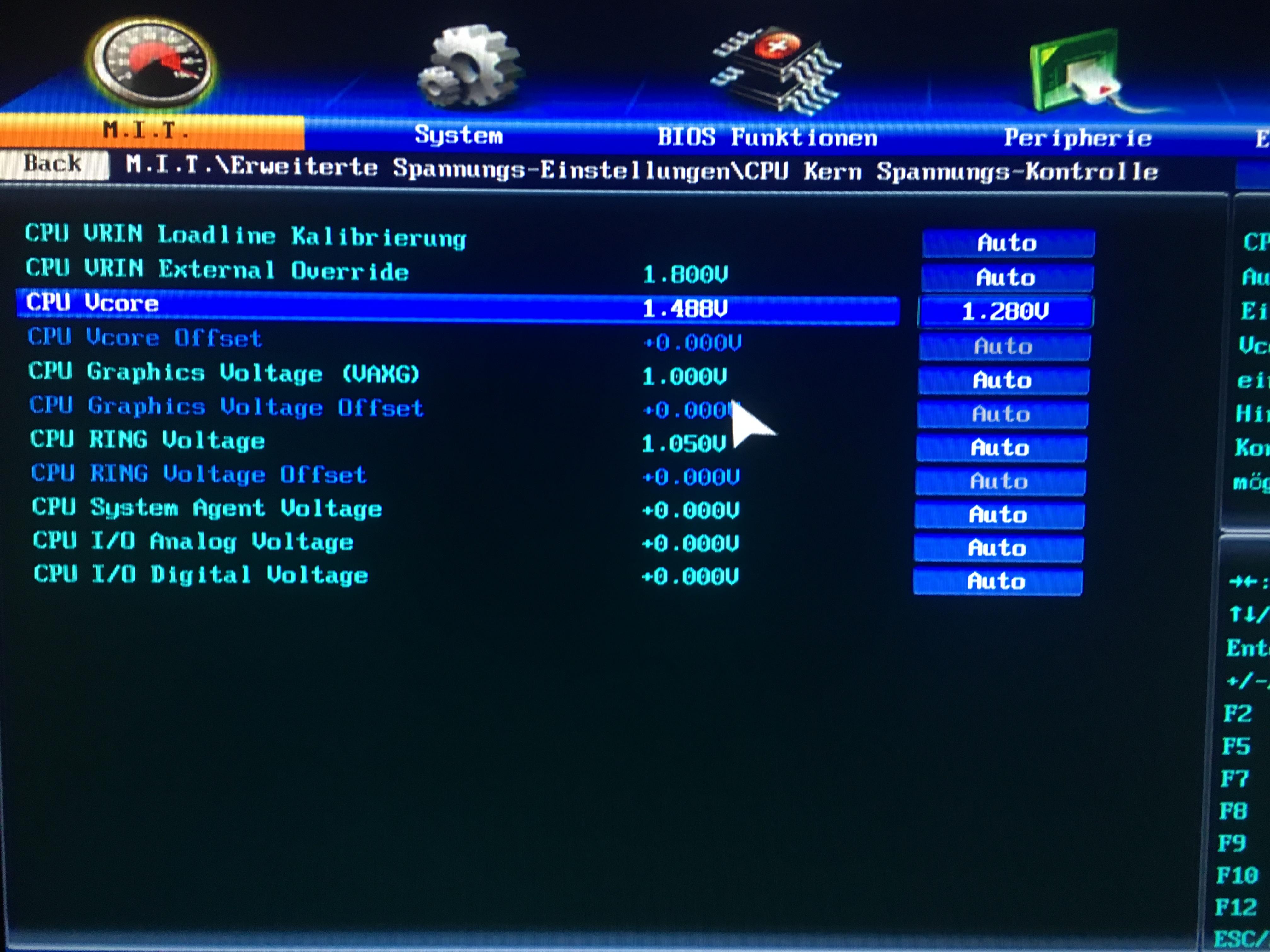 Wenn ich im Bios auf Standarwerte wiederherstellen Klicke bleiben die 1.488 V der Cpu Vcore vorhanden
