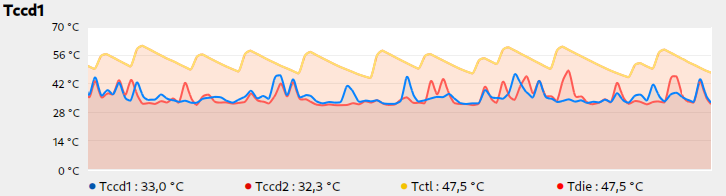 In dem Kühlkreislauf sind die Grafikkarte und die CPU (Ryzen 3900x), die Grafikkarte ist gerade im Idle mit ~30w und die CPU hat auch nicht viel zu tun: