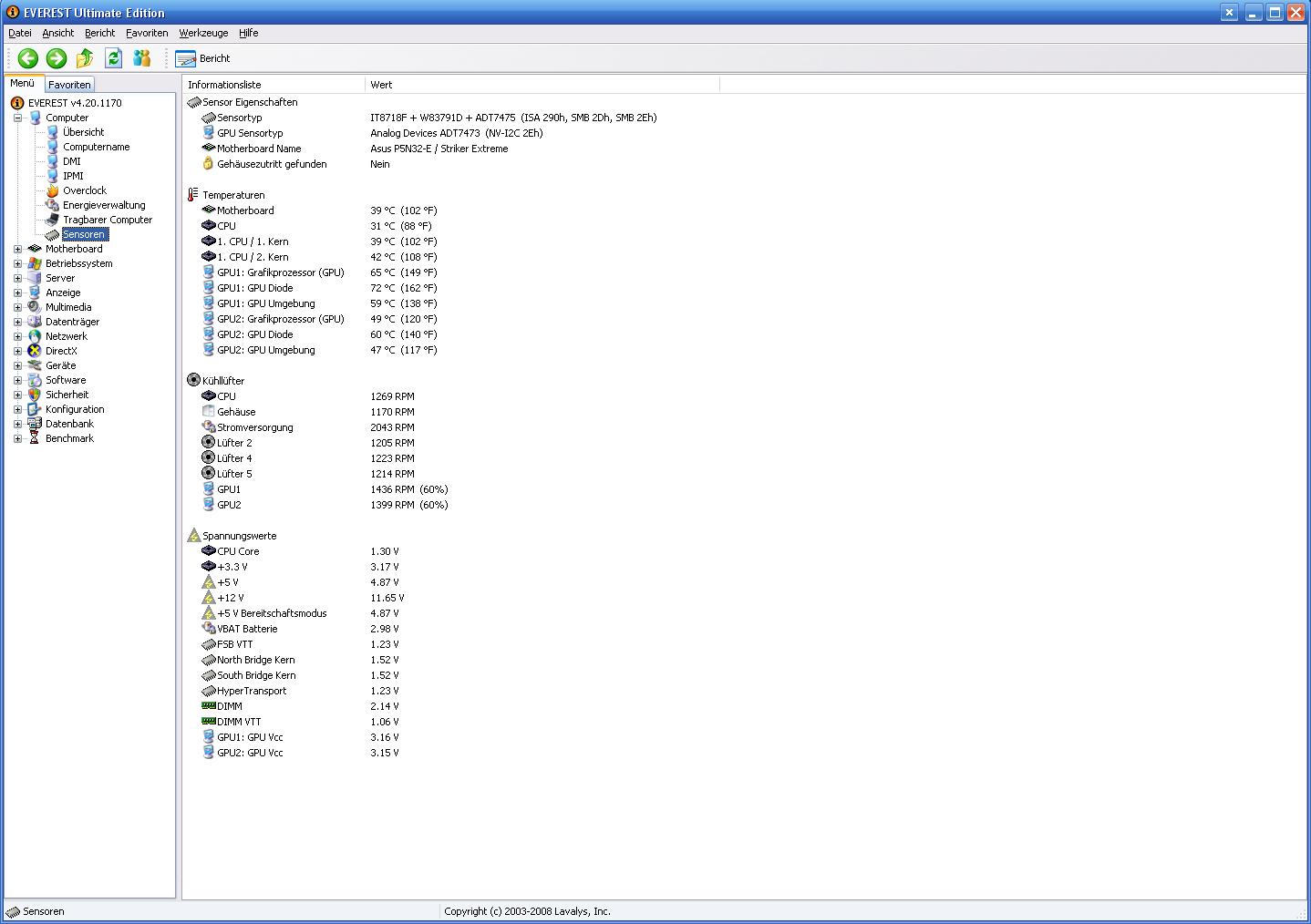 wenn ich meinen PC mit Prime teste wird meine Graka ziemlich heiß so etwa 75 °C (Diode)! Gemessen hab ich per Everest! Ist das nicht bissel zu warm im Idle betrieb? Lüfter laufen bei 60 % Leistung! Bei Vollast geht allerdings die Temperatur nie über 90 °C! Muss ich mir jetzt Sorgen machen? Die Raumtemperatur beträgt ca. 23 °C!