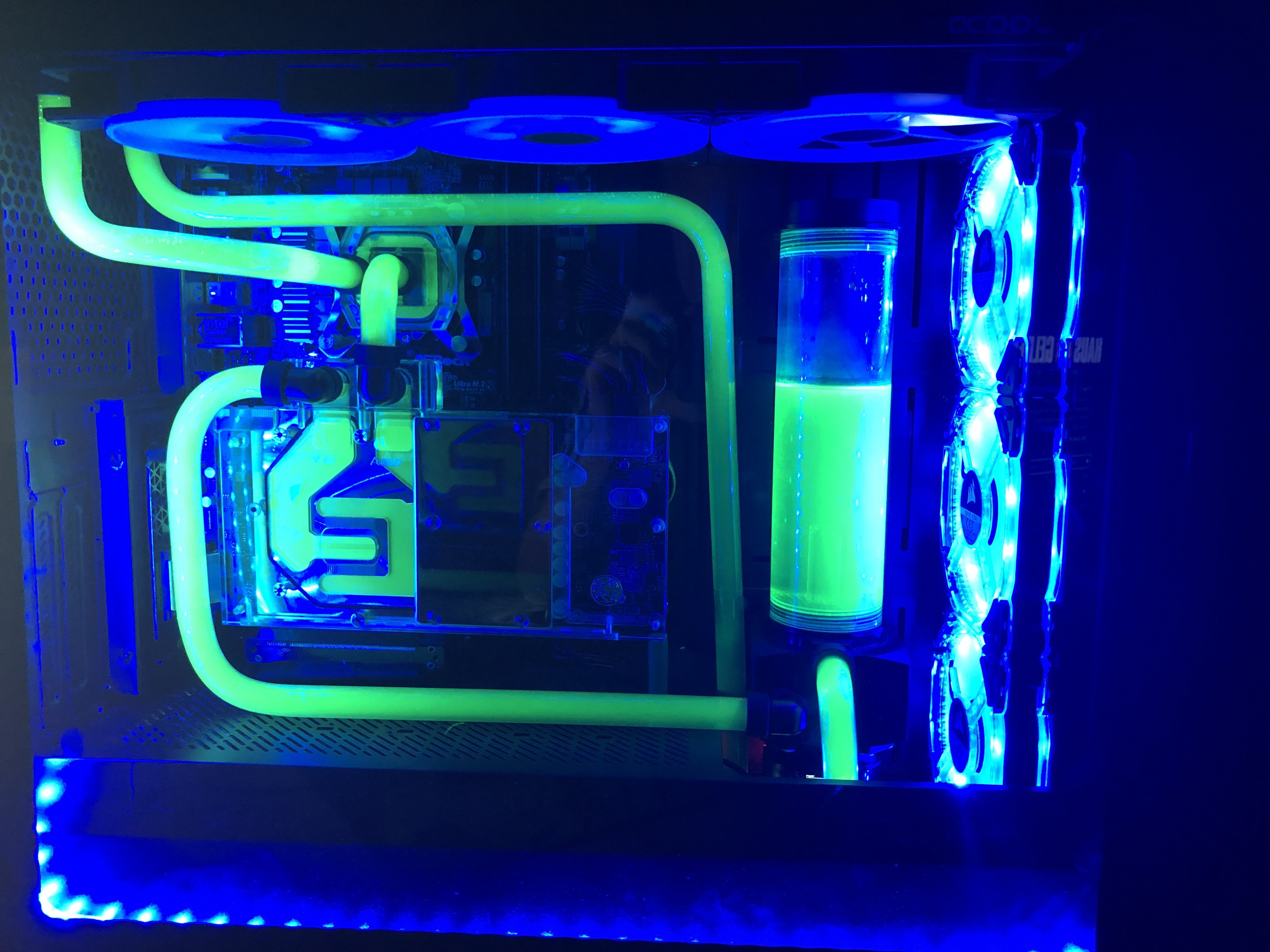 Bei Prime 95 belaufen sich die Temperaturen des Wasser auf bis zu 35 Grad, im normalen Betrieb auf bis zu 38 Grad.
