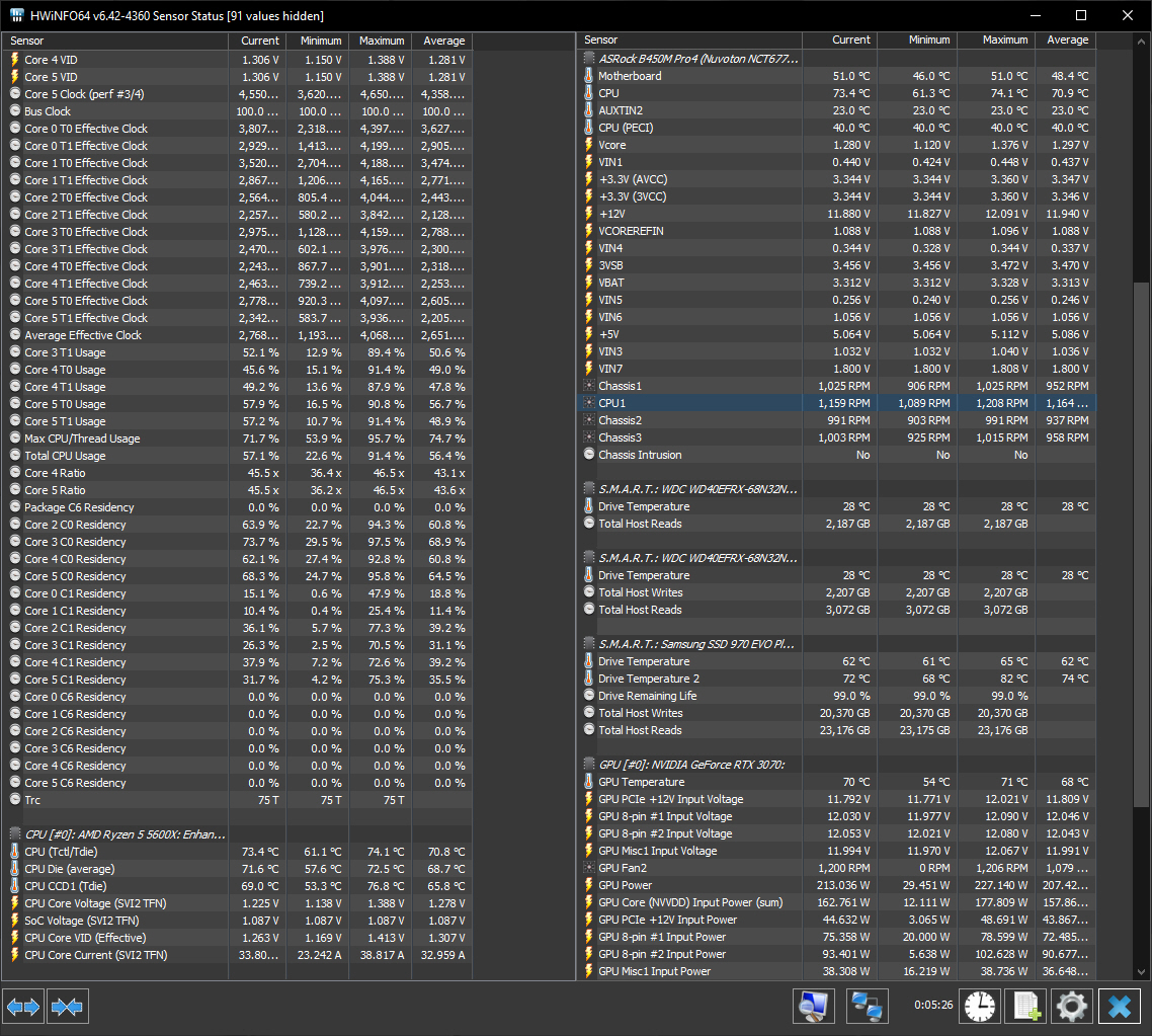 mein 5800x schaffte auch zwischen 82-90 °C (hwinfo 6.35) mit der x63 aio.
