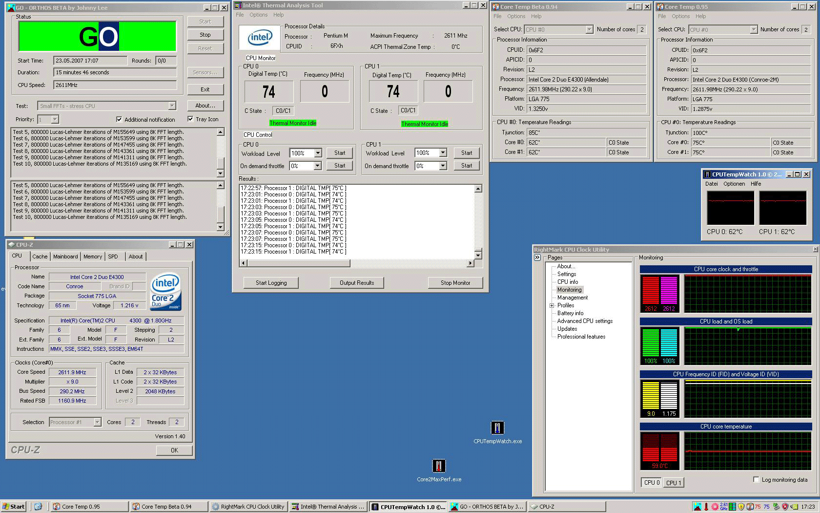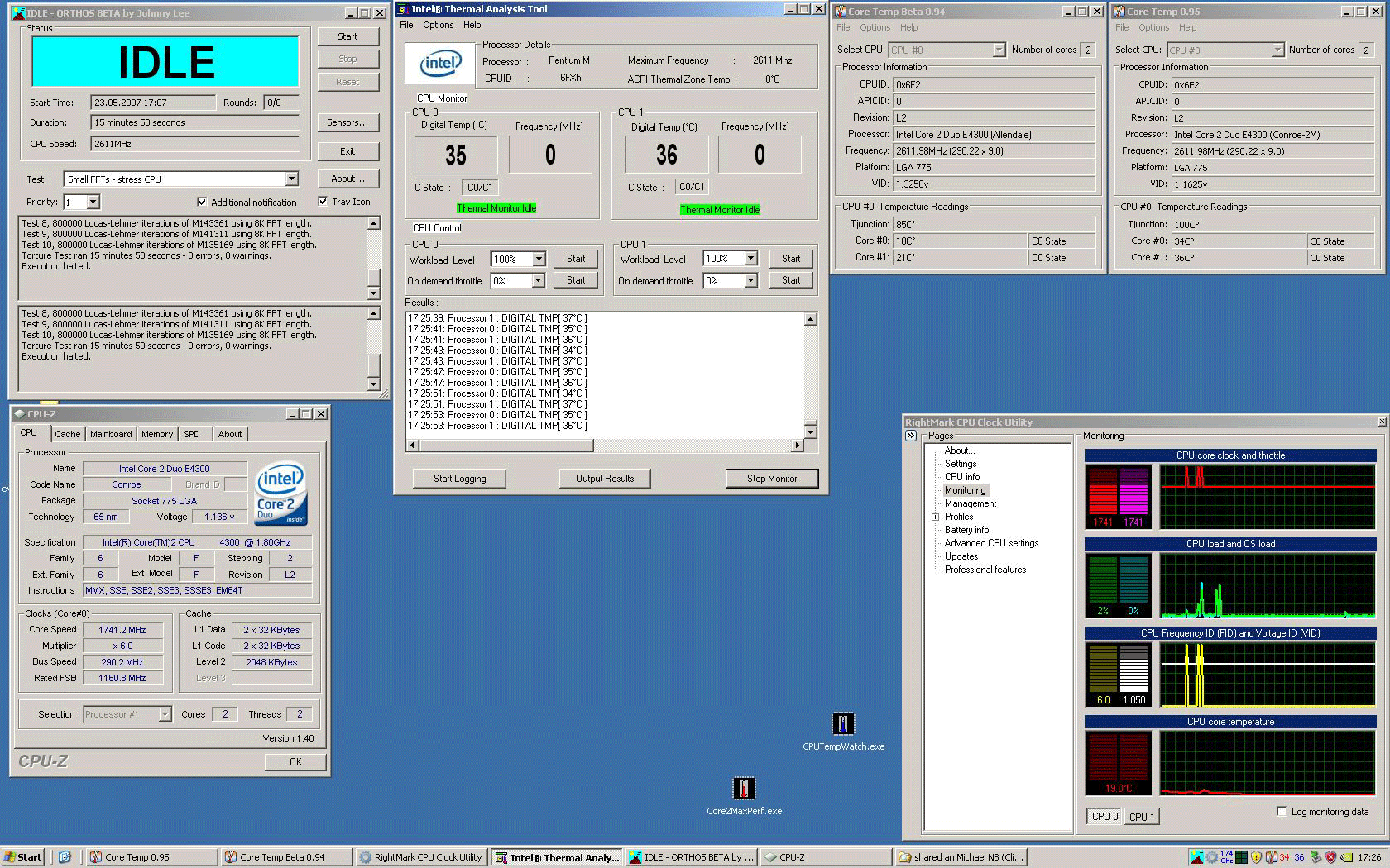 coretemp 0.94: 22°C/23°C je kern mit 85°C tjunction e4300 allendale l2 [idle]