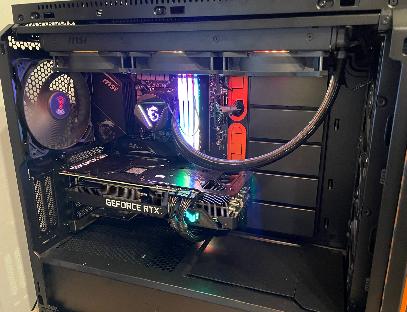 - Kühlung: MSI Coreliquid 360R (ist oben im Gehäuse verbaut)
