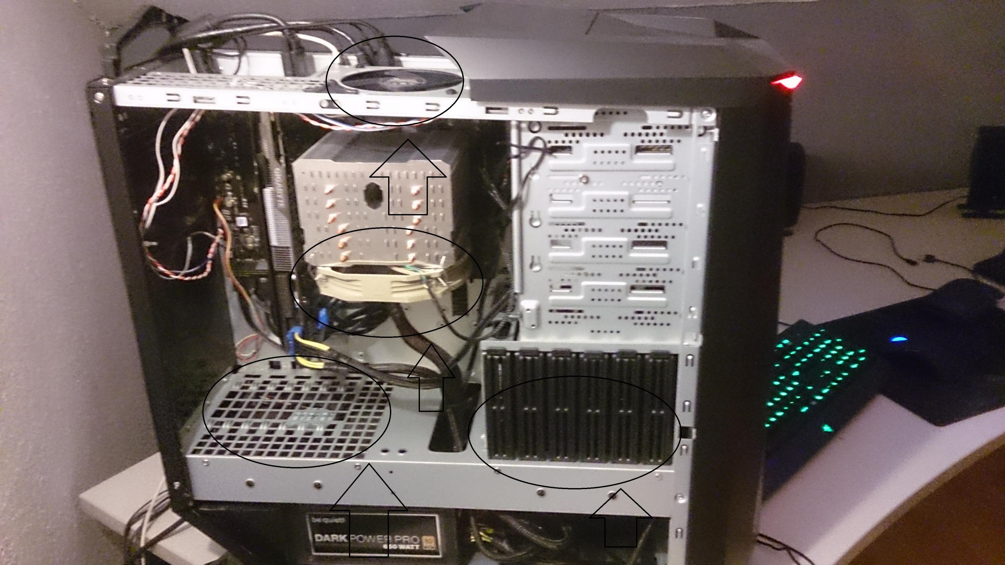 Grafikkarte wurde komplett entstaubt, Grafikkarte hat vor ca 4 Monate eine neue WLP bekommen, Gehäuse ist nicht verstaubt, Gehäuselüfter funktionieren alle einwandfrei, keine Kabel stören den Airflow im Gehäuse, Lüfter des Windforce Kühlers drehen alle 3 .
