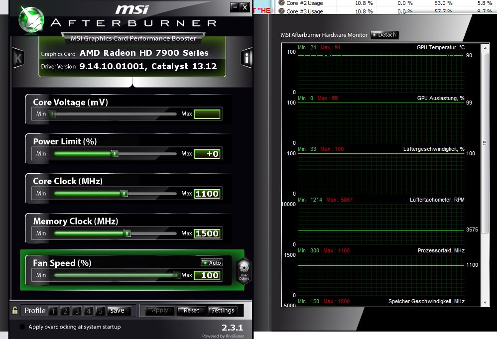 Gigabyte HD7970 Ghz Edition (mit angepasstem Lüfterprofil im Msi Afterburner, nicht übertaktet)