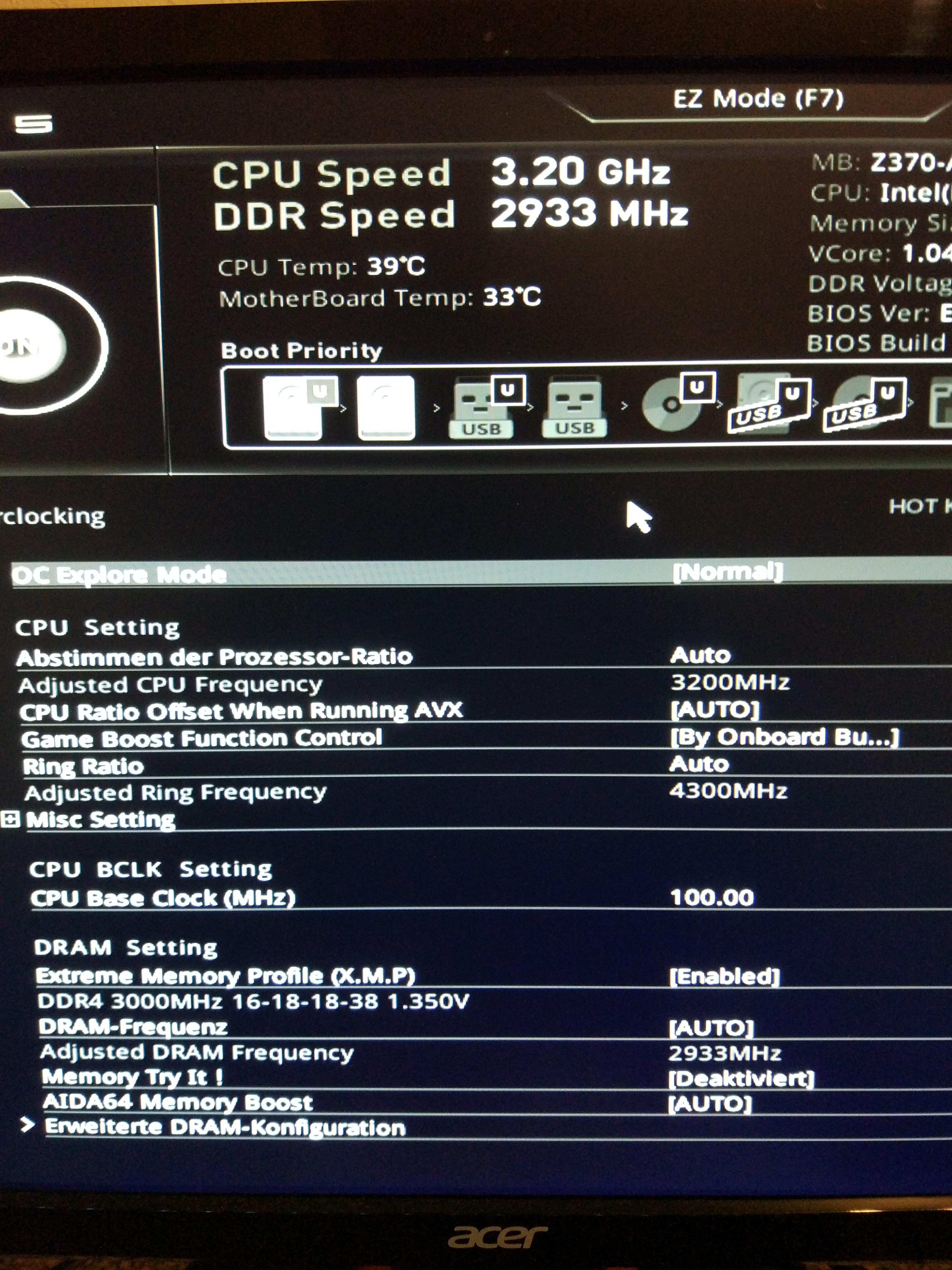 ich versuche dann, wenn das mit dem Hochladen geht, noch mal Bilder hochzuladen vom Bios und von HWInfo.