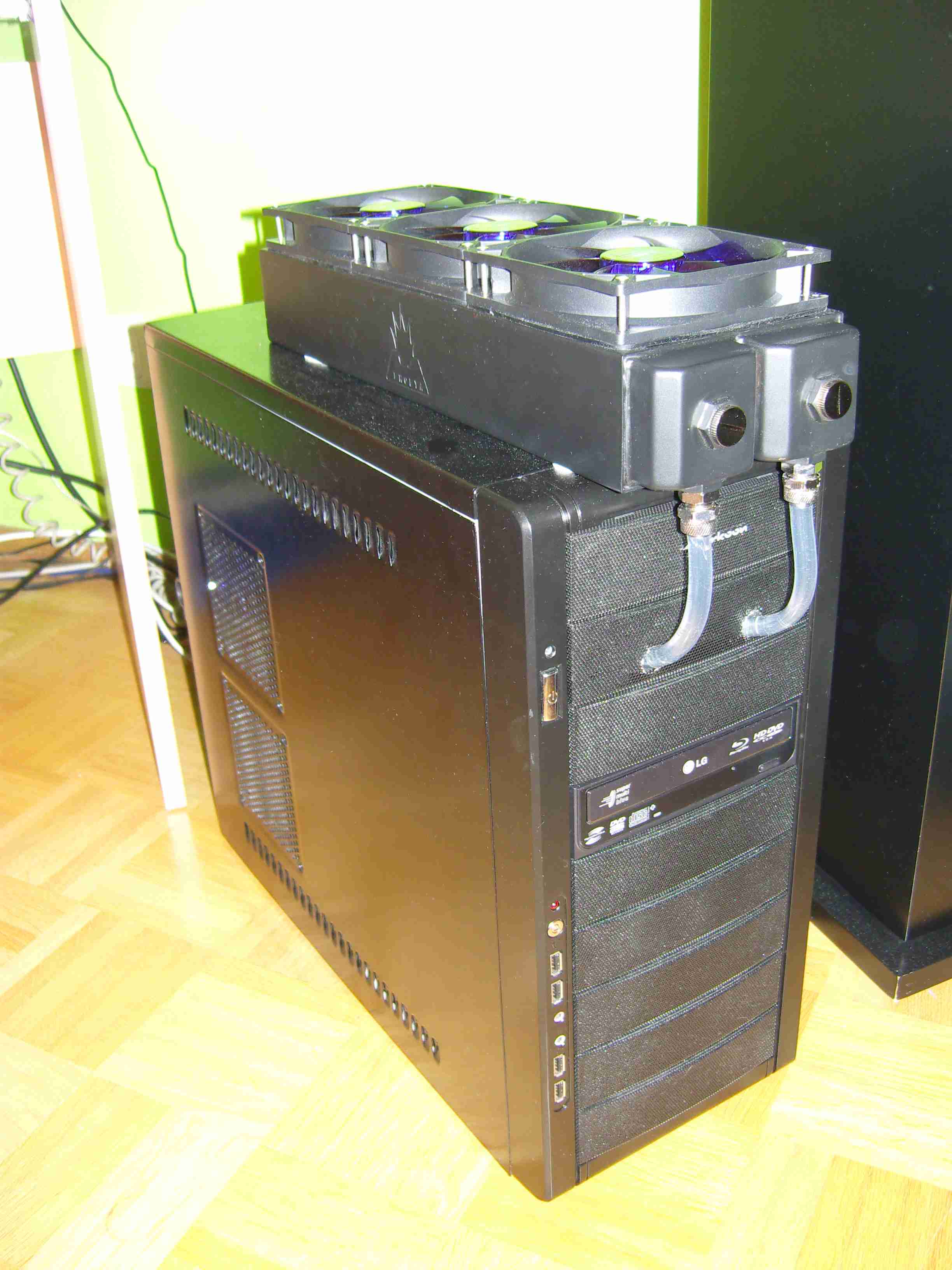 und dann wunderst du dich noch :( wenn du schon dabei bist kannst du auch gleich noch die lüfter unten drunter nach oben pustend montieren um dir die thermik zu nutze zu machen wobei das deutlich weniger bringt als den radi atmen zu lassen.