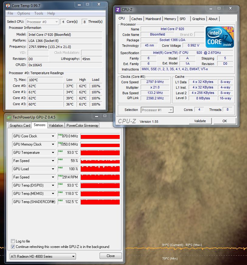 Außer den neuesten ATI Treiber draufgemacht. Das kann aber doch nicht am Treiber liegen oder?! Weil 93°C GPU Temp ist mir schon etwas arg hoch vor allem weil beim Spielen auch schon 91°C erreicht werden, (Bei Metro 2033 92°)...