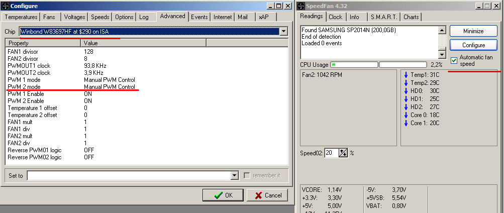 Auf der anderen Seite stehen in meinen Augen auch die äußeren Gegebenheiten. Zuerst einmal der Prozessor selbst. Der Core2 wurde für Intel als sparsamer denn je gepriesen, verbaucht wenig Saft und sollte folglich nicht so heizen. Aber mit eventuell 50 Grad idle trotz HyperTX-Kühler (ist nix großes, aber immerhin) und neuem, gut belüftetem, Gehäuse würde das Ding gut 10 Grad wärmer als mein alter P4 in einem Gehäuse, das noch nicht einmal einen Lüfter besaß. Generell fällt die vCore auf meinem billigen ASRock Board unter Last teils auf 1,25V ab und mit Standardtakt sollte die Leistungsaufnahme dadurch besonders gering sein.