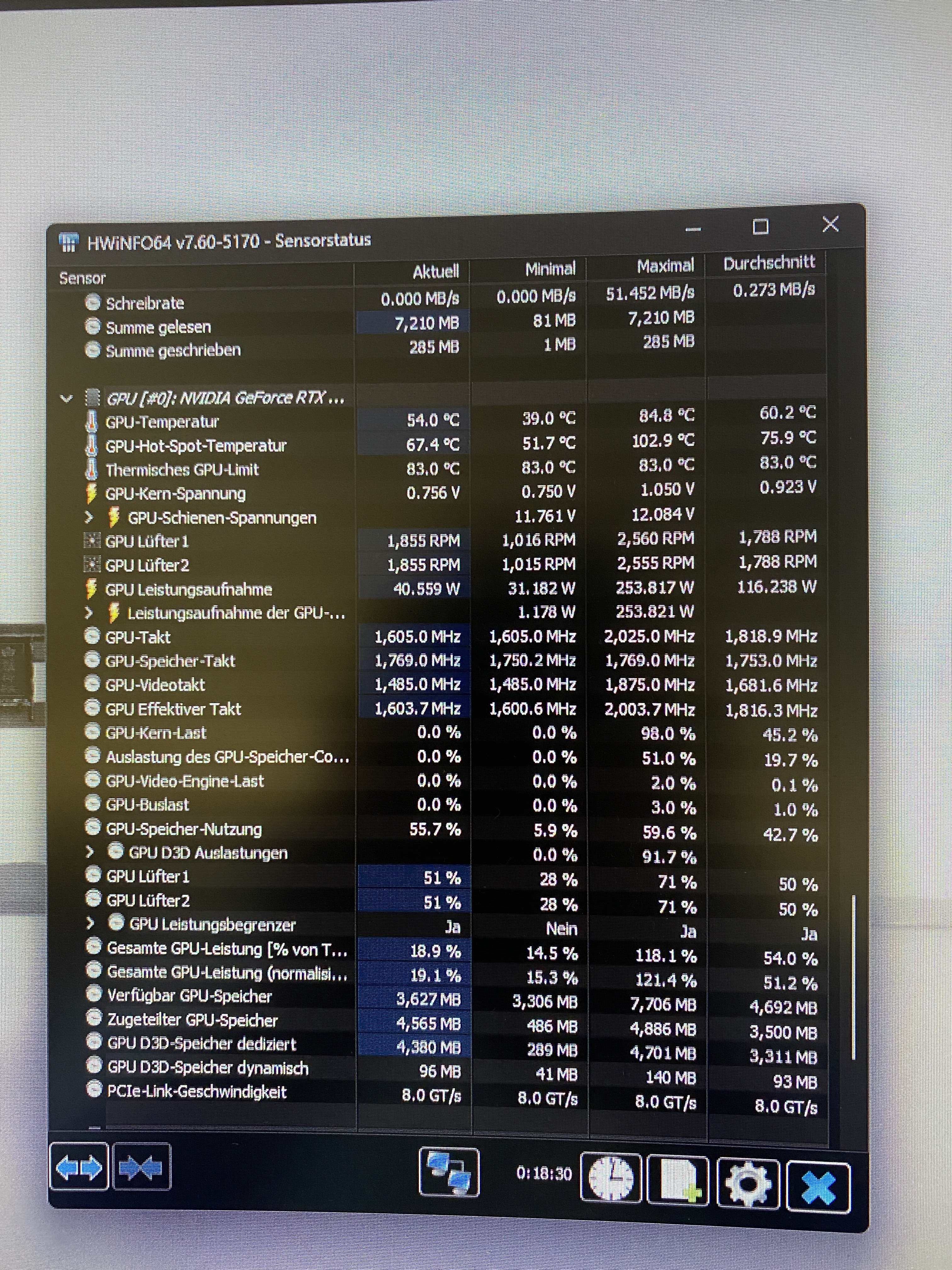 Hi, ich habe mir eine gebrauchte strix rtx 2070 super gekauft. Ich habe beim ersten mal gemerkt, dass die temps sehr hoch sind. Habe daraufhin dann die Grafikkarte gereinigt und die Wärmeleitpaste gewechselt habe arctic mx4 verwendet. Sind die temps in Ordnung und wenn dies so ist wie viel OC hält denn die karte Erfahrungsgemäß aus?