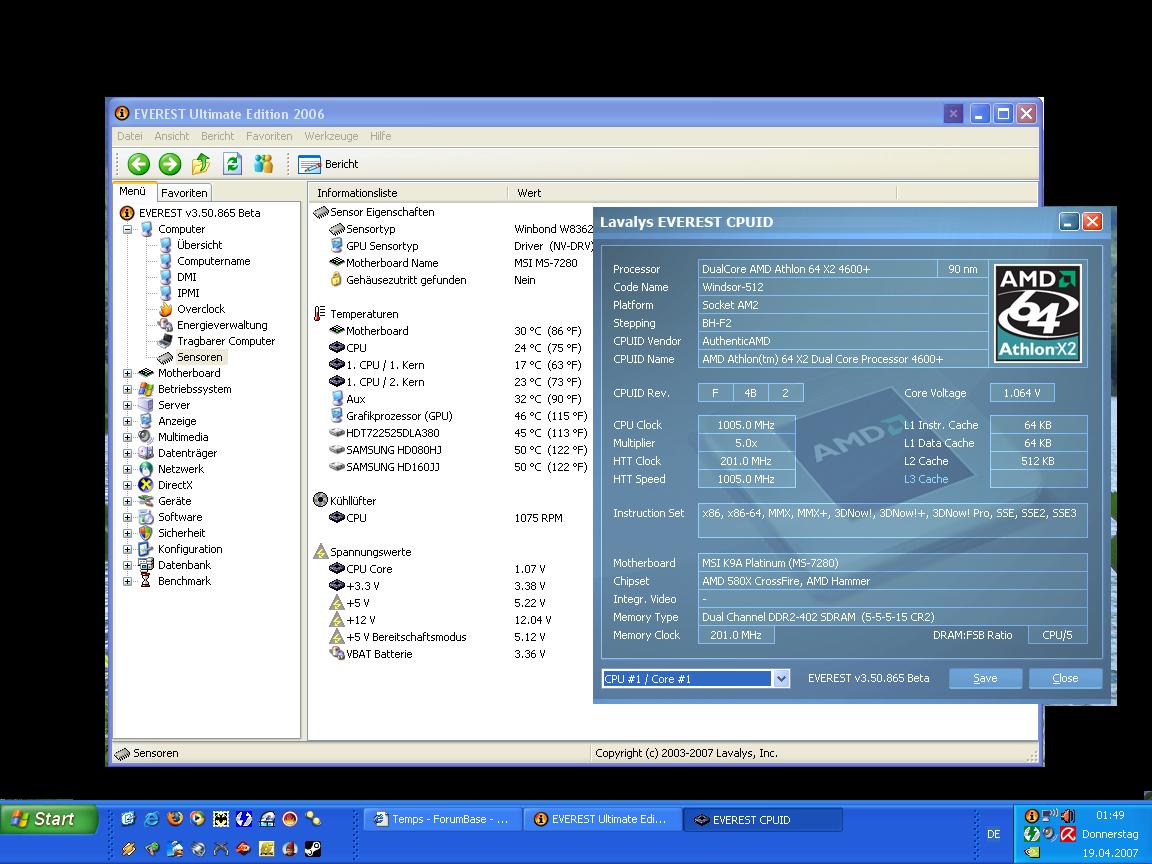 Das gleiche Programm, sei es CoreTemp, Speedfan oder sonstige Auslesetools geben bei meinem (einzigen) C2D aber immer total unrealistische Ergebnisse.
