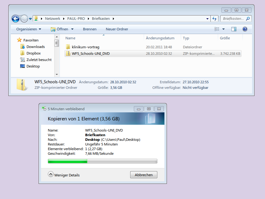 Geschwindigkeit stark schwankend, immer wieder Abbrüche, Übertragung hängt zwischendurch für kurze Zeit
