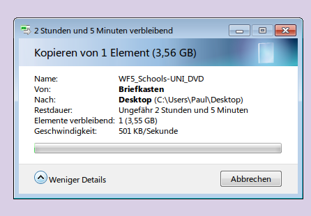 Test 2: Kopieren eines LinuxISOs in DVD-Größe von meinem Fileserver (Debian 4 mit GigabitLAN) über Samba