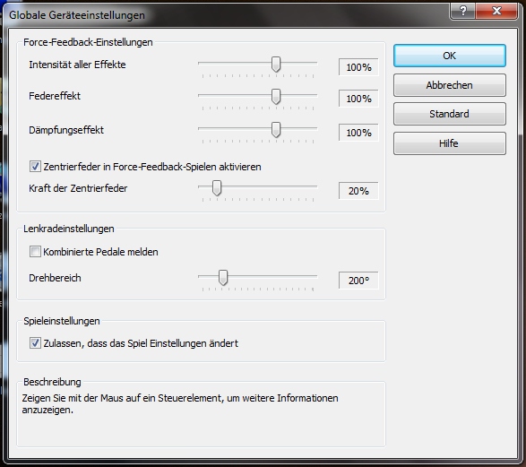 Die Settings für mein G25 ingame sind die hier (ich konnte keinen ingame-Screenshot machen):