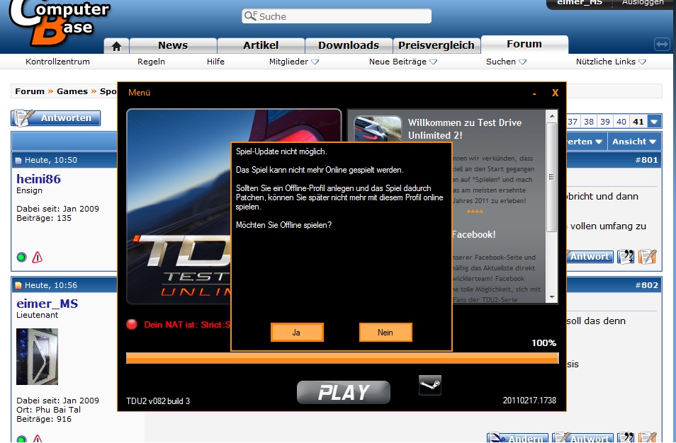 bin ich der einzigste wo seit heute die tdu2.exe gepatcht werden soll und es bei der hälfte abbricht und dann eine meldung kommt ob ich mein profil zum offline profil umwandeln will...