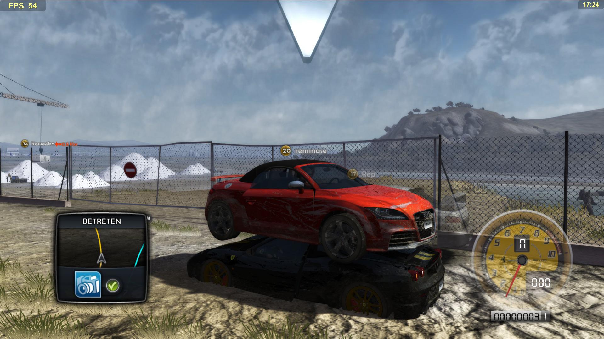 Das ich auf Jemand drauf gespawnt bin hatte ich sogar schonmal bei TDU 1. Da sah das aber Cool aus weil ich mitm Motorrad aufm Auto stand ^^