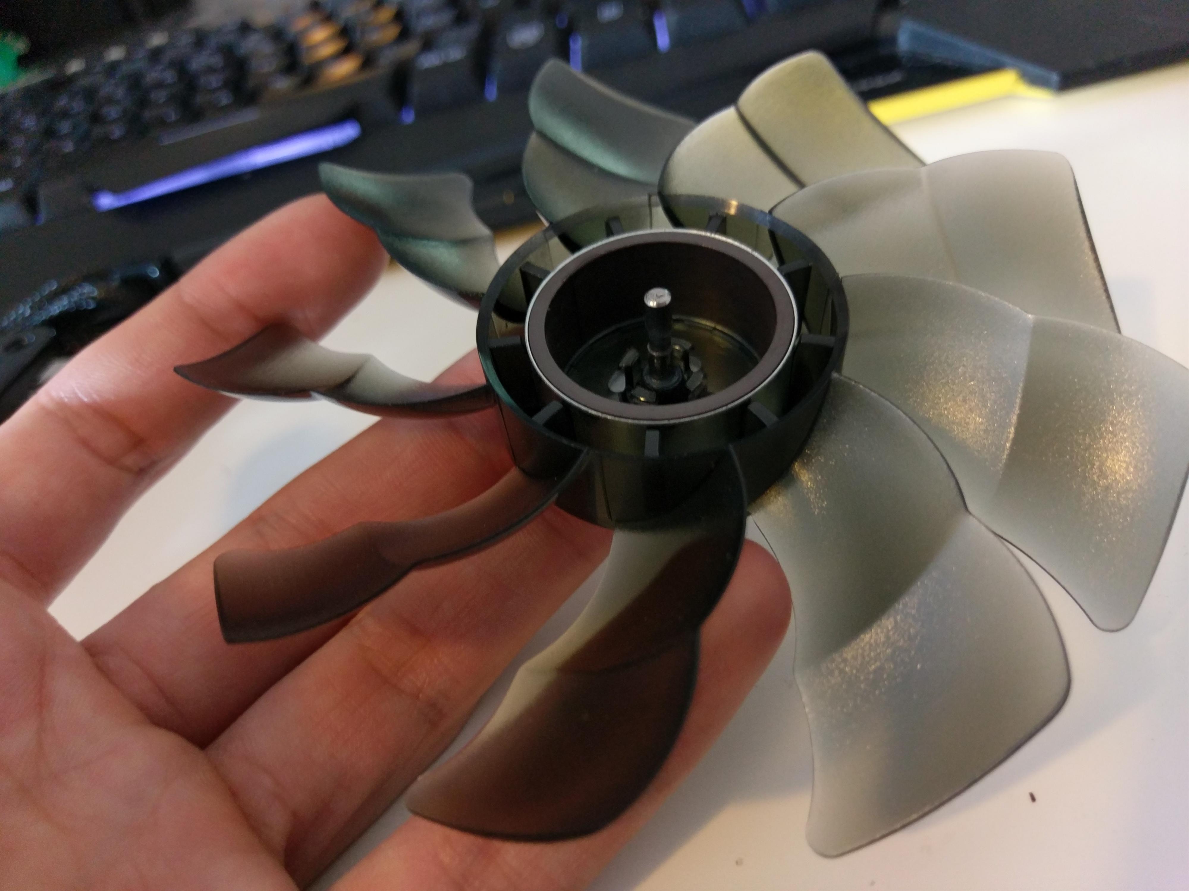 Die Lüfterbläter lassen sich sehr leicht ablösen mit etwas Druck von hinten(nicht falsch verstehen