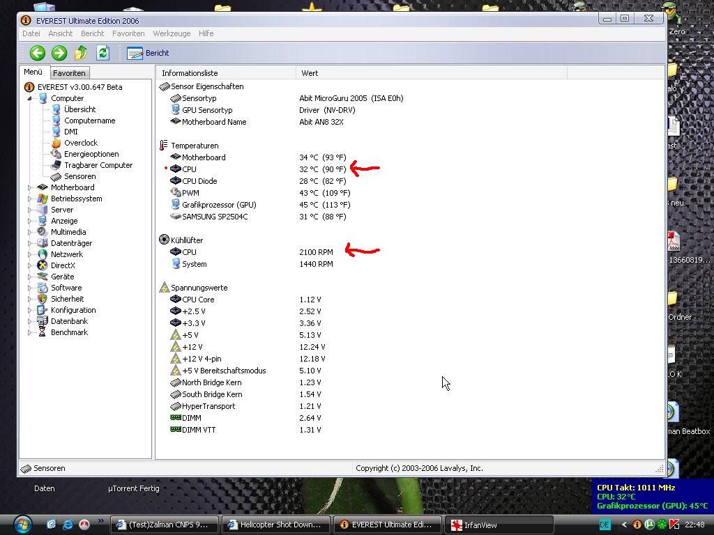 warum sollte der Ninja (bei mehr als der doppelten durchströmenden Luftmenge) bis zu 5°C wärmer sein als der Zalman.