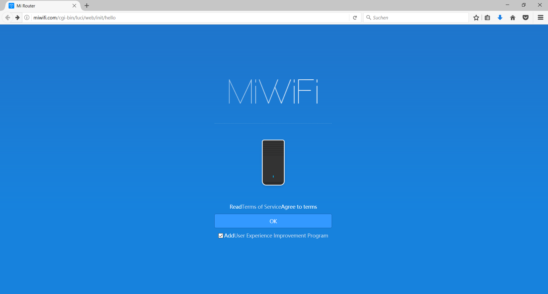 Zuerst ruft man via Browser die Seite miwifi.com auf. Anschließend liest man die "Terms of Service" und klickt auf OK.
