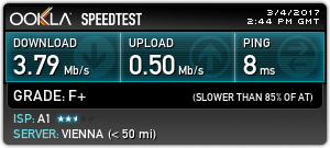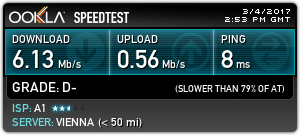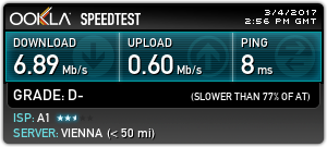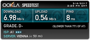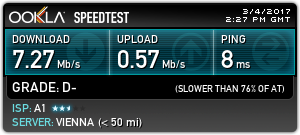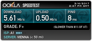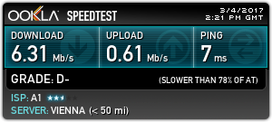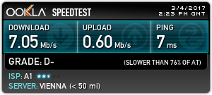 Zu erkennen ist, dass die Signalstärke des 2,4GHz Bandes relativ konstant gut bleibt. Das merkt man auch deutlich, wenn man eine Website aufruft. Die Stärke des 5GHz Bandes ist jedoch leider relativ schlecht. Zwar ist dies bis zu 2m noch akzeptabel, aber anschließend befindet es sich auf dem Level des von A1 zur Verfügung gestellten Routers.