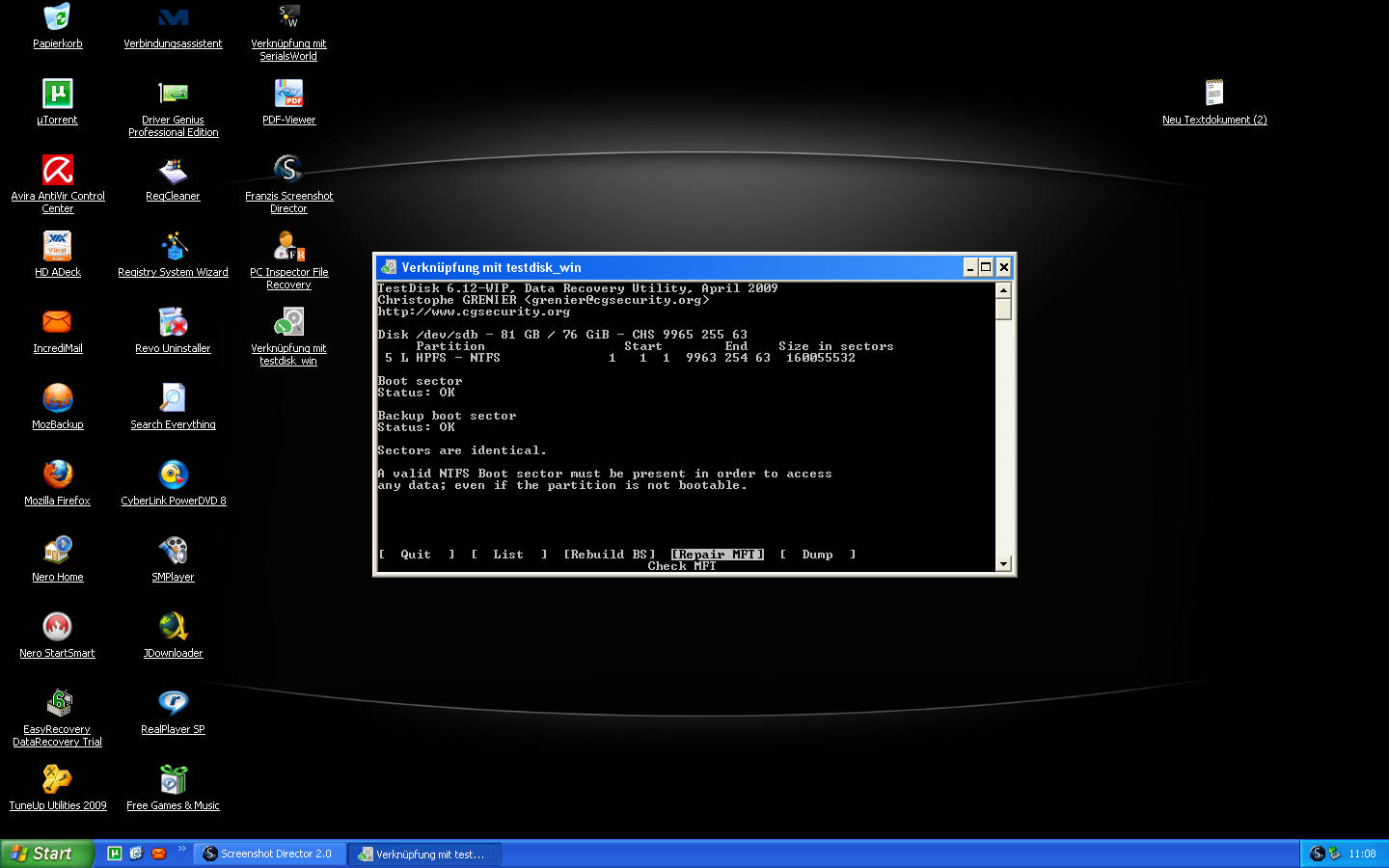 $MftMirr ist beschädigt und nicht lesbar diese Meldung habe ich bekommen.Kann ich die Daten noch retten??? Habe die Platte ( ist eine Maxtor ) noch nicht formatiert.