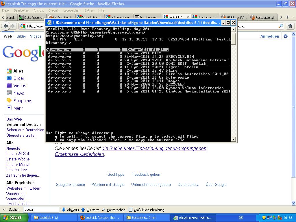 Komm an einer Stelle in Testdisk nicht mehr weiter: Die Dateien sind gelistet, was nun?