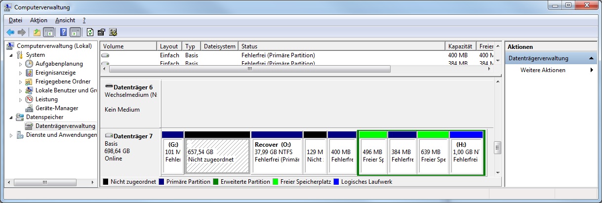 "mein freund hat die Festplatte angepasst, sodass wir zusätzlich wieder windows 7 installieren können, damit ich an meine Daten ran komme (AdR: natürlich megamäßig ultrawichtige Daten, die natürlich aus diesem Grund exakt einmal, nämlich auf dieser Festplatte existieren /O-Ton_ende) um sie wegzusichern. Aber er hat dann in der Installationsroutine die falsche Partition (immerhin richtige Benutzung des Begriffs) gelöscht"