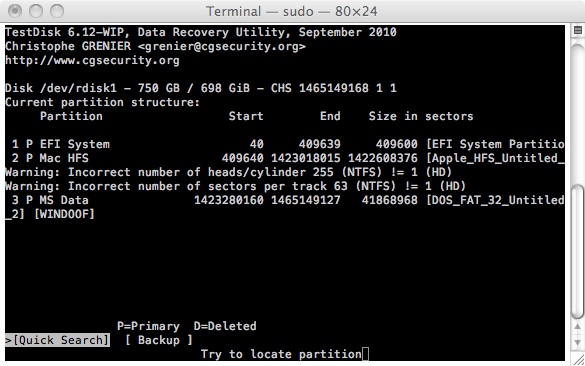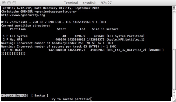 Testdisk gebraucht: USB-Platte mit HFS+ und NTFS-Partition gelöscht