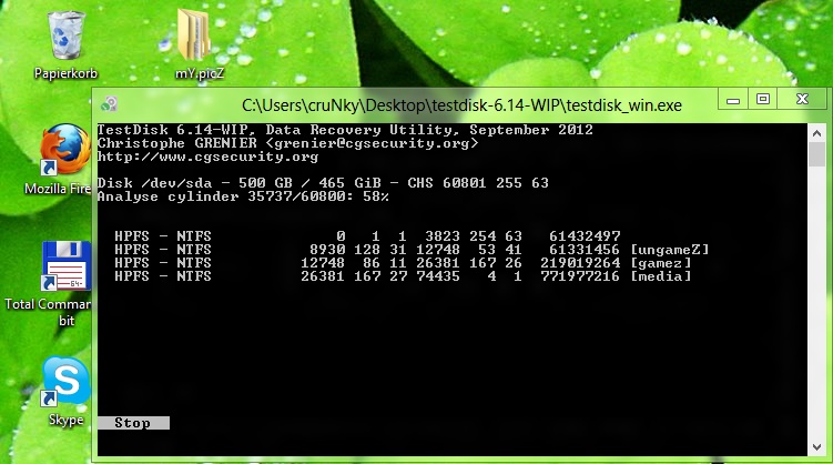 Es ist auch schon sehr spät und ich bin müde und habe diesen Testdisk schon 4x durchlaufen lassen.