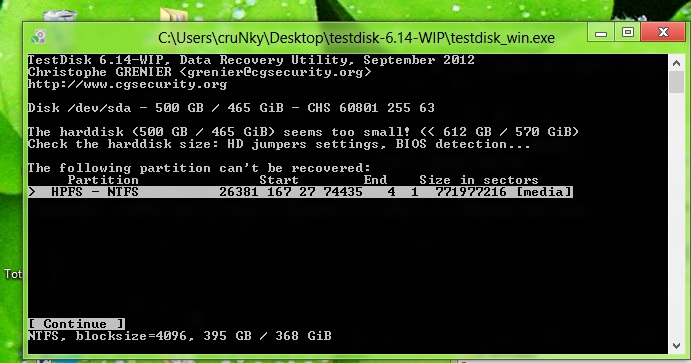 Dazu finde ich die Zahlen, die der Testdisk anzeigt irre. Die letzten vor dem Partitionsnamen sind doch die Größe? Da soll die PArtition auf der 500gb platte 771gb groß sein O.o...