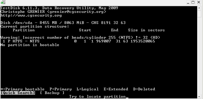 Irgendwo hab ich gelesen, ich soll die Anzahl der Zylinder mit Testdisk korrigieren, das hab ich auch getan, änderte allerdings erstma nix, immer noch read error.