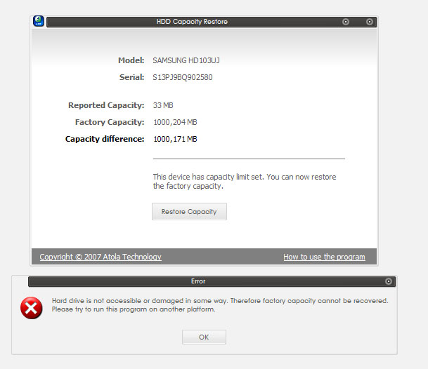 Vor 3 Tagen hat sich meine Festplatte ohne sich ordnungsgemäß zu verabschieden verabschiedet. Sie wurde plötzlich im Windows Explorer (ich nutze XP) nicht mehr unter ihrem Namen, sondern als Lokaler Datenträger angezeigt. Klickt man darauf, kommt die Meldung, dass die Festplatte nicht formatiert sei. Das könnte ich mit 7.87 GB machen, allerdings unterscheidet sich das dann doch von den 1000 GB, die sie haben sollte.