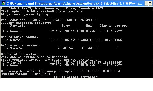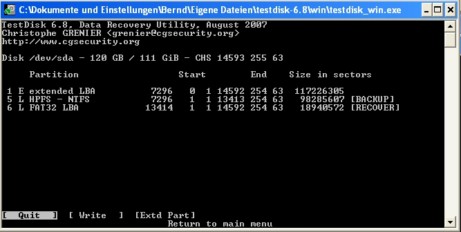 Kann ich eigentlich Ergebnisbildschirme aus testdisk irgendwie kopieren? Eigentlich wollte ich die Analyseergebnisse auch mit posten.