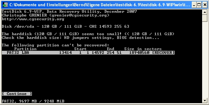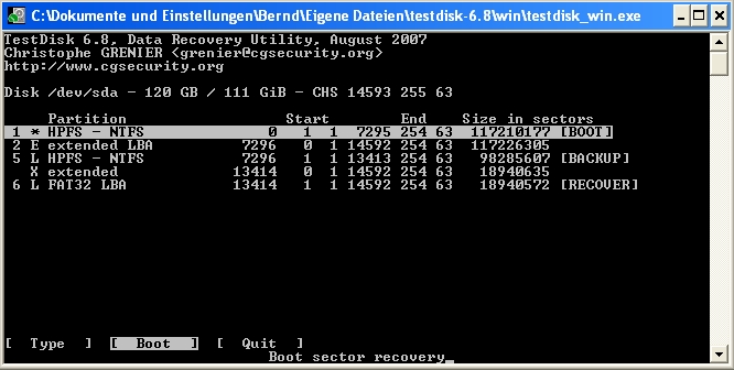 Kein Problem, bin sehr froh, dass Du mir hilfst. Hier sind die Screenshots mit dem jetzigen Stand. D.h. neue Partition ist geschrieben, aber Boot ist noch nicht ausgeführt. Habe noch einen zusätzlichen Screenshot von der Meldung gemacht, dass die Partition Recover nicht wiederhergestellt werden kann.