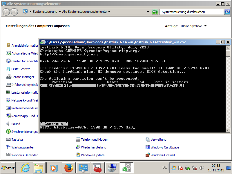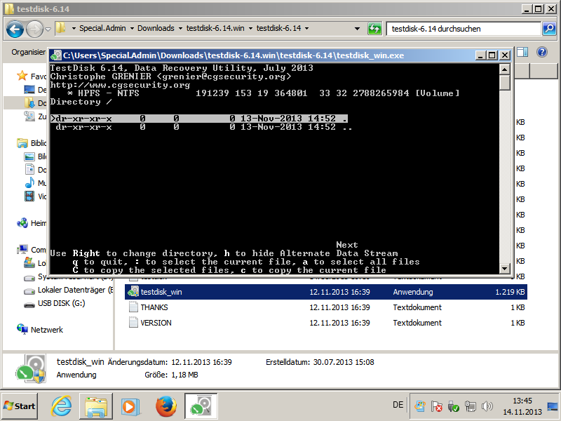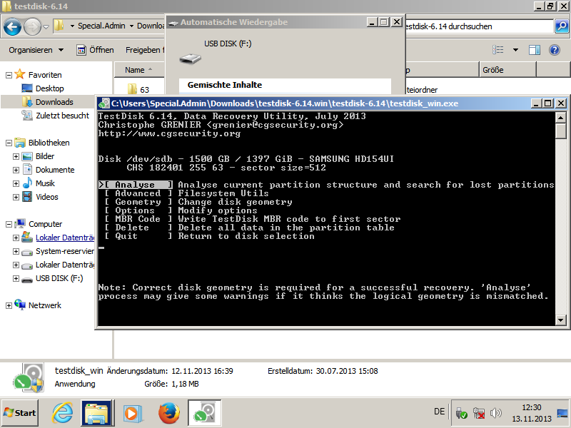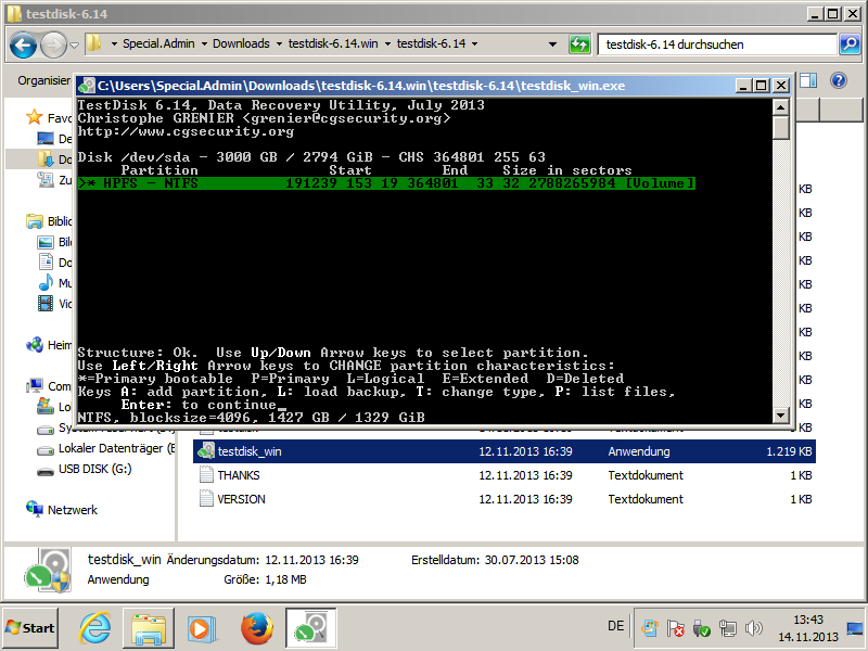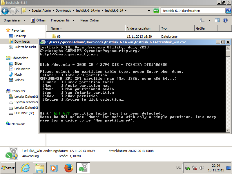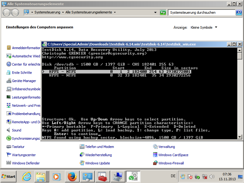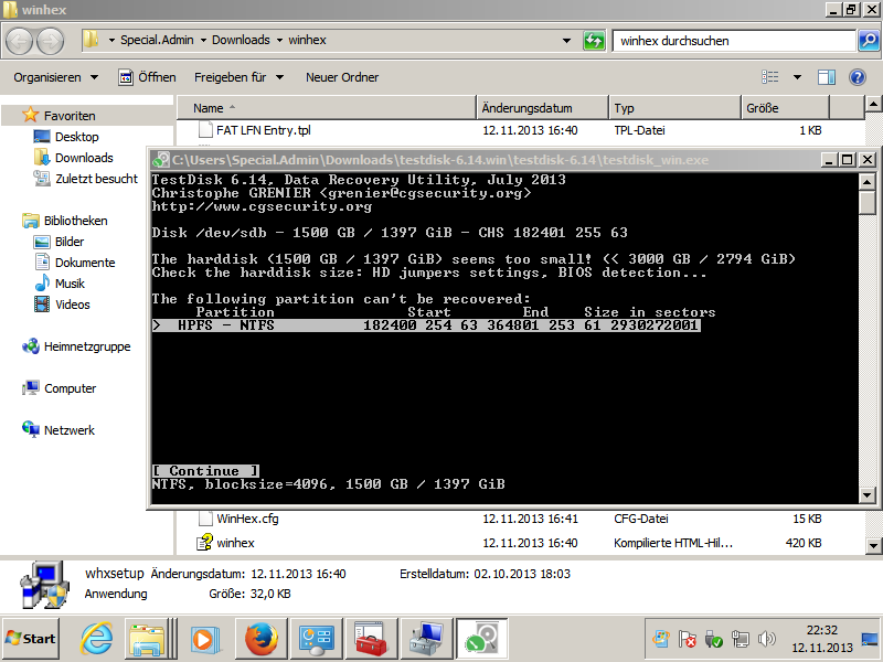 Für Tipps und Hilfestellungen, wie ich nun am Besten weitermachen sollte wäre ich sehr dankbar. Ich benutze Testdisk zum ersten Mal und will eventuelle Chancen auf Rettung nicht zerstören.