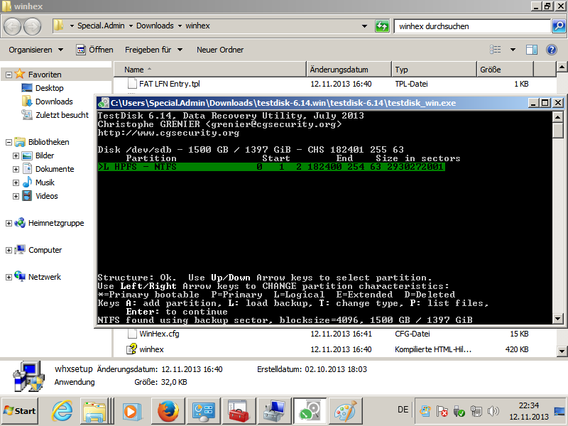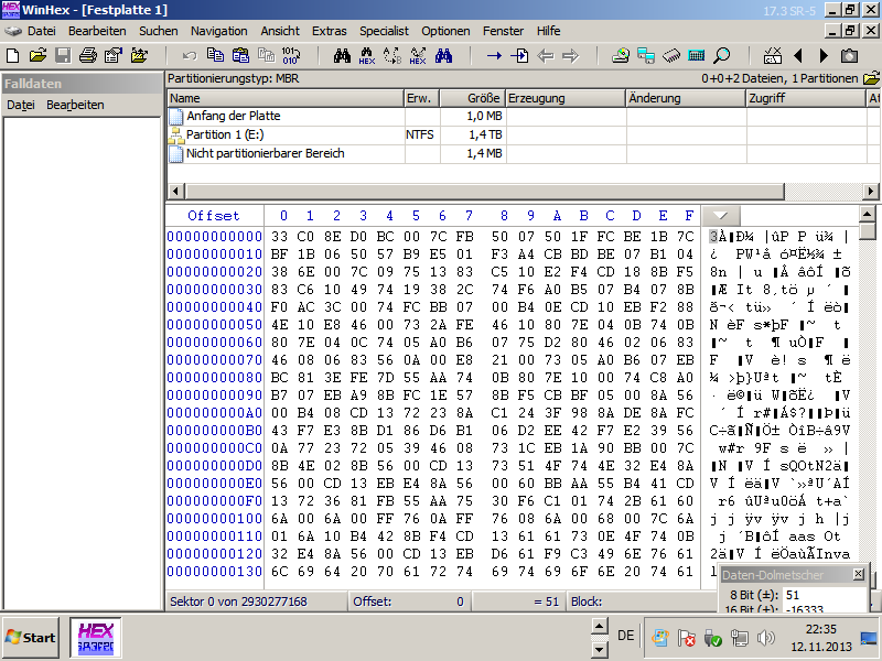 Auch in WinHex wird die Partition angezeigt (dritter Screenshot).