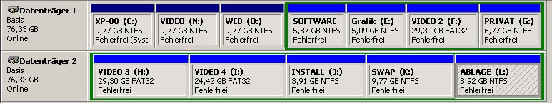 Meine Konfiguration(siehe screen_00 – Achtung, das ist nur ein Anhalt für die Aufteilung, es sind jetzt alles NTFS-Partitionen):