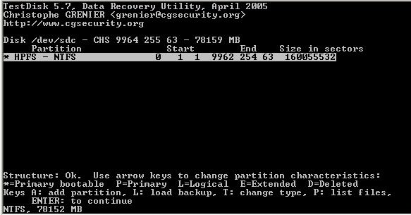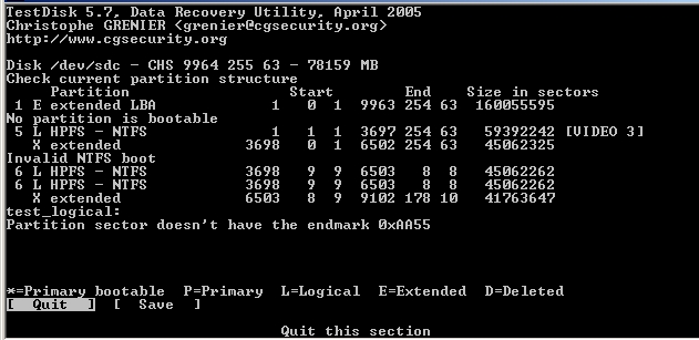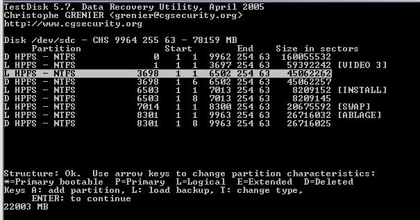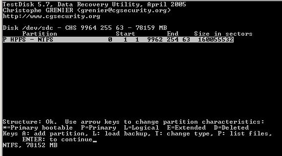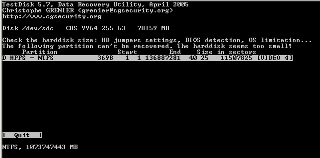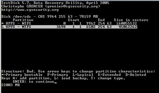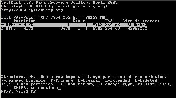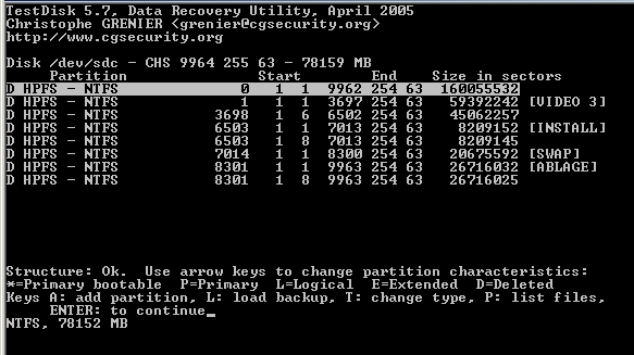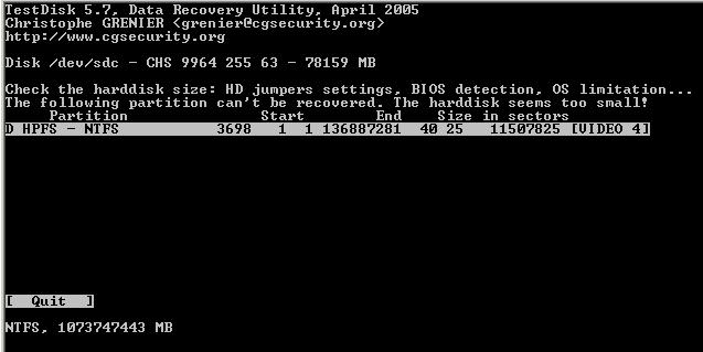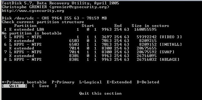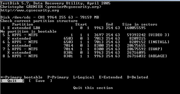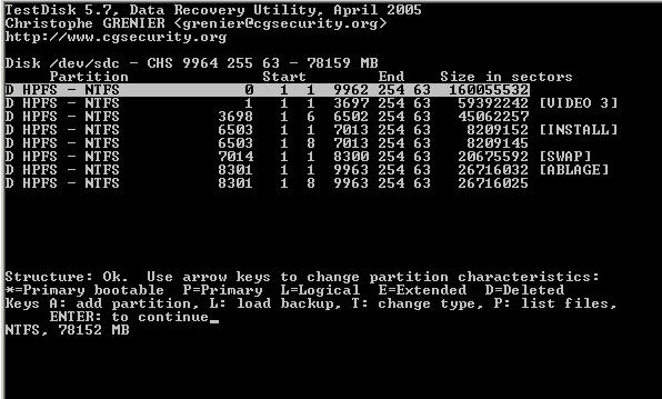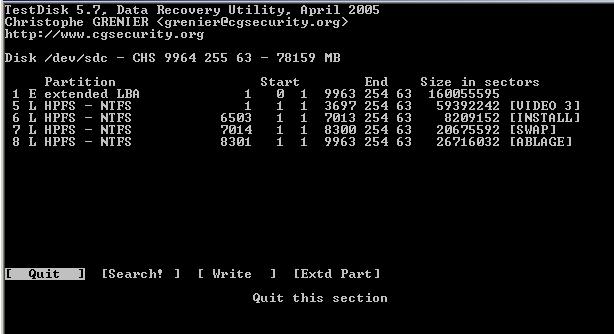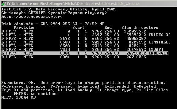 Meine Kenntnisse reichen nicht aus, um die Meldung von “testdisk“ richtig zu deuten. Welche Informationen soll ich wieder herstellen??? (siehe screens)